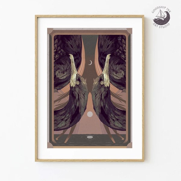 Cormorant Illustration Art Print – A4 | A3 | 8X10″