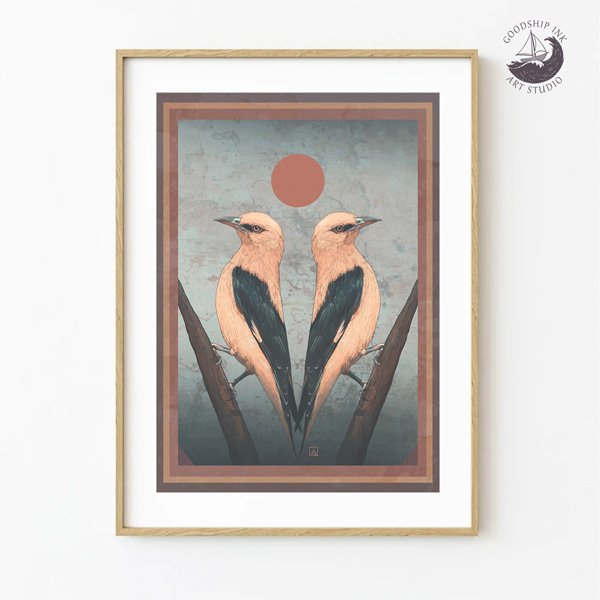 Cormorant Wings Illustration Art Print – A4 | A3 | 8X10″