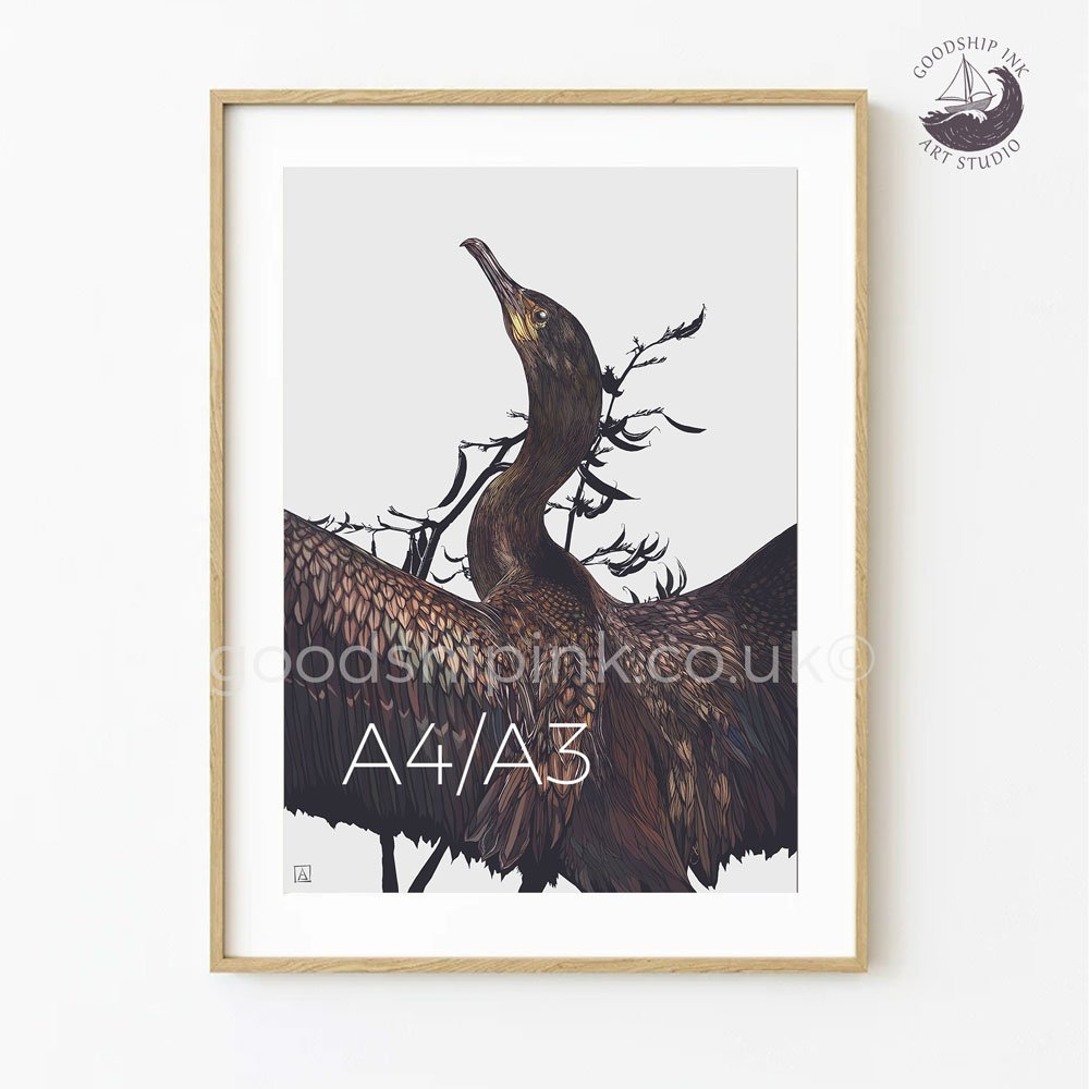 Great Cormorant Art Print – A4 | A3 | 8X10″